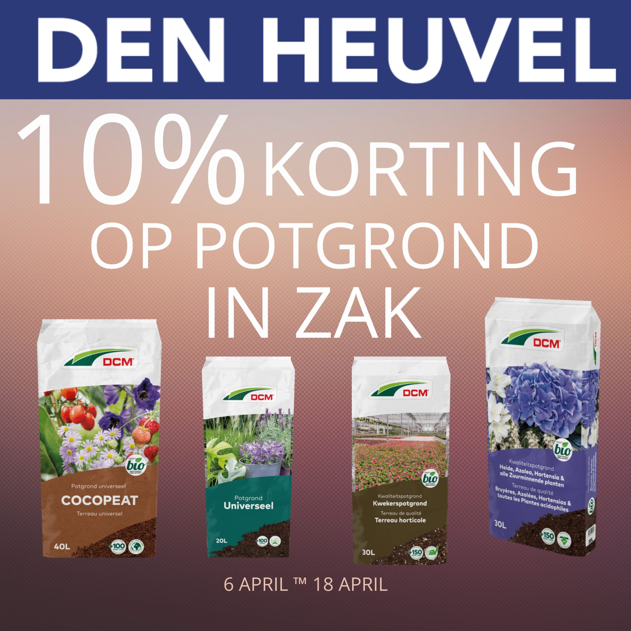 Nu 10% korting op potgrond Krijg 10% korting op potgrond in zak! Deze actie geldt op verschillende soorten potgrond en is geldig van 6 april + Lees Meer april 7, 2026